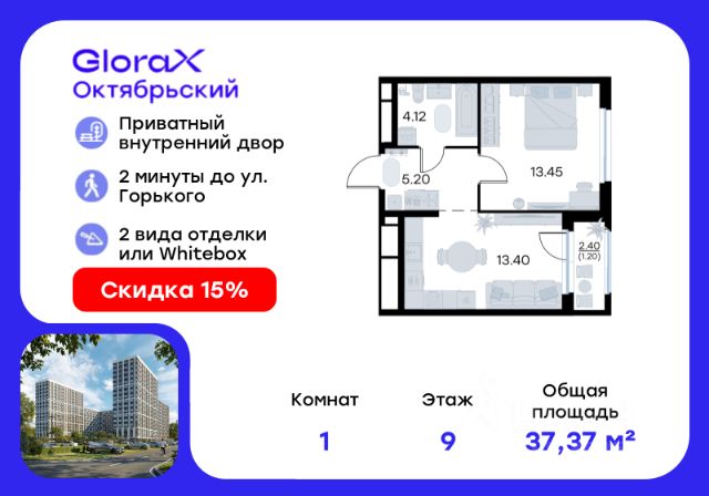 Продается 1-комн. квартира на 8-м этаже в строящемся проекте комфорт-класса GloraX Октябрьский. Общая площадь лота составляет 30,29 кв. м, из которых 10,19 кв. м отведено под жилую и 10,87 кв. м под кухонную зону. Номер квартиры - 281. Преимущества квартиры: Вид на улицу; прямая остекленная лоджия - Собственная коммерческая инфраструктура и комьюнити-центр для жителей - Безопасность на всех уровнях: закрытый двор, видеонаблюдение и система "Умный Дом" - Безбарьерная среда - Дизайнерские остекленные холлы - Просторные колясочные в каждой секции - Эргономичные квартиры с европланировками - Чистовая отделка квартир в 2 стилях на выбор и с дополнительной опцией покраски стен в 4 трендовых цвета на выбор: агатовый серый, серебристо-серый, серый шелк и тонкий лен. - Пешеходный бульвар, площадь с амфитеатром, велодорожки, спортивные и детские площадки, многоуровневые паркинги и "зеленые" дворы. - Строительство трех современных детских садов на 750 детей и проектирование общеобразовательной школы на 1500 учеников GloraX Октябрьский — масштабный проект комфорт-класса во Владимире, который расположился в 2-х минутах от ул. Горького. На территории 40 Га появятся 9 очередей жилого строительства с благоустроенными терриориями и концепцией "Тихий двор". 7,31 Га выделено под озеленение. GloraX Октябрьский — это комфортная среда обитания, где каждый сантиметр продуман и логичен. Это единое пространство, в которое входят пешеходный бульвар, площадь с амфитеатром, велодорожки, спортивные и детские площадки, многоуровневые паркинги и "зеленые" дворы. Во дворах есть всё для тренировок на свежем воздухе: велодорожки, турники, брусья, площадки для кроссфита и воркаута с мембранным покрытием для круглогодичных занятий. В коммерческих помещениях первых этажей планируется размещение аптек, магазинов, кафе и сервисных центров, необходимых для комфортной жизни. GloraX Октябрьский находится в локации с развитой инфраструктурой и хорошей транспортной доступностью. В шаговой доступности расположены остановки общественного транспорта, 3 детских сада, 3 школы и главный корпус Владимирского государственного университета. Отличительное преимущество GloraX Октябрьский — видовые квартиры на верхних этажах. Все помещения сдаются уже с предчистовой отделкой. Вы сможете сразу переехать и начать жить в новом доме. Цена указана при 100% оплате или стандартной ипотеке. Узнайте подробности в Отделе продаж.