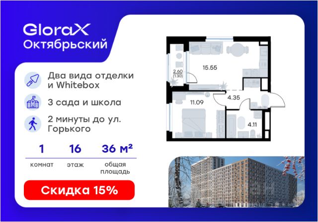Продается "Комнат" на "Этаж (ряд)"-м этаже в строящемся проекте комфорт-класса GloraX Новинки. Общая площадь лота составляет "Площадь по проекту общая (расчетная)" кв. м, из которых "Площадь по проекту жилая" кв. м отведено под жилую и "Площадь по проекту кухни" кв. м под кухонную зону. Номер квартиры - "лота". Преимущества квартиры: - Собственная коммерческая инфраструктура и комьюнити-центр для жителей - Безопасность на всех уровнях: закрытый двор, видеонаблюдение и система "Умный Дом" - Безбарьерная среда - Дизайнерские остекленные холлы - Просторные колясочные в каждой секции - Эргономичные квартиры с евро-планировками - Чистовая отделка квартир в 2 стилях на выбор и с дополнительной опцией покраски стен в 4 трендовых цвета на выбор: агатовый серый, серебристо-серый, серый шелк и тонкий лен. - Пешеходный бульвар, площадь с амфитеатром, велодорожки, спортивные и детские площадки, многоуровневые паркинги и "зеленые" дворы. - Строительство трех современных детских садов на 750 детей и проектирование общеобразовательной школы на 1500 учеников GloraX Октябрьский — масштабный проект комфорт-класса во Владимире, который расположился в 2-х минутах от ул. Горького. На территории 40 Га появятся 9 очередей жилого строительства с благоустроенными терриориями и концепцией "Тихий двор". 7,31 Га выделено под озеленение. GloraX Октябрьский — это комфортная среда обитания, где каждый сантиметр продуман и логичен. Это единое пространство, в которое входят пешеходный бульвар, площадь с амфитеатром, велодорожки, спортивные и детские площадки, многоуровневые паркинги и "зеленые" дворы. Во дворах есть всё для тренировок на свежем воздухе: велодорожки, турники, брусья, площадки для кроссфита и воркаута с мембранным покрытием для круглогодичных занятий. В коммерческих помещениях первых этажей планируется размещение аптек, магазинов, кафе и сервисных центров, необходимых для комфортной жизни. GloraX Октябрьский находится в локации с развитой инфраструктурой и хорошей транспортной доступностью. В шаговой доступности расположены остановки общественного транспорта, 3 детских сада, 3 школы и главный корпус Владимирского государственного университета. Кроме того, в рамках реализации проекта планируется строительство трёх современных детских садов на 750 детей и проектирование общеобразовательной школы на 1500 учеников. Отличительное преимущество GloraX Октябрьский — видовые квартиры на верхних этажах. Все помещения сдаются уже с предчистовой отделкой. В пакетных предложениях предусмотрена дополнительная возможность установки датчиков протечек для вашей безопасности. Можно выбрать жилье с полной отделкой или готовые квартиры с меблировкой, подобранной профессиональными дизайнерами. Вы сможете сразу переехать и начать жить в новом доме. Узнайте подробности в Отделе продаж.
