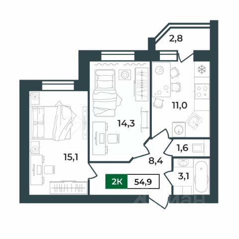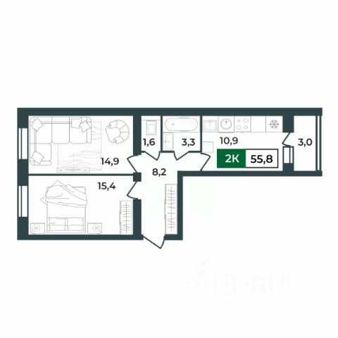 Особенностью этой двухкомнатной квартиры является объединенная с кухней гостиная общей площадью более 19 квадратных метров! Помещение разделено на зоны для приготовления пищи, где можно установить кухонный гарнитур и большой обеденный стол для всей семьи, и ТВ-зону, где поместится хороший просторный диван. Из кухни имеется выход на лоджию (больше 3 кв. м.), которая будет остеклена 2-камерным стеклопакетом при сдаче дома. При такой планировке совмещенной кухни и гостиной, неоспоримым преимуществом этой двухкомнатной квартиры являются две отдельные комнаты. Одну из них, площадью 10,3 квадратных метров, можно использовать под спальную комнату, где можно установить широкую кровать или раскладной диван и вместительный шкаф для одежды. Вторую комнату, площадью 10 квадратных метров, можно использовать в качестве детской или кабинета. Интересным и полезным решением в этой двухкомнатной квартире стали два санузла! Один - полноценный, площадью 4,25 квадратных метра, а второй - небольшой, площадью 1,7 квадратных метра, с отдельным унитазом. Для семьи с детьми - очень актуальное решение. Отдельное внимание стоит обратить на помещение рядом с большим санузлом в нём можно организовать отдельную постирочную комнату или гардеробную. Прихожая (больше 7,5 кв. м.) является непроходной. Изолированность прихожей позволяет держать в чистоте остальные помещения квартиры грязь с улицы не будет разноситься по комнатам. Доступны такие способы покупки, как наличные, ипотека от ведущих банков (в т.ч. все программы с субсидиями и господдержка), ипотека со снижением ставки за счёт застройщика, рассрочка до 2 лет напрямую от застройщика. В цену квартиры сразу входит ремонт в формате White Box с гарантией на все работы! Купить 2-комнатную квартиру на 1 этаже в Коврове.