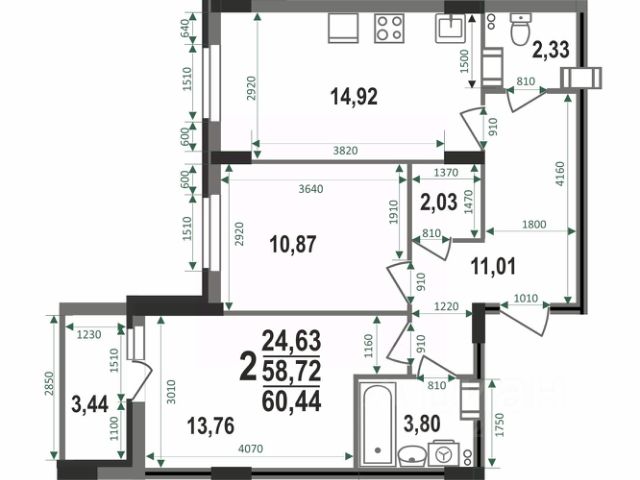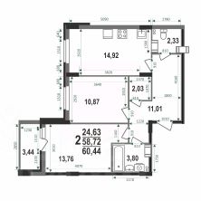 При входе в квартиру есть изолированная зона для уличной обуви. Таким образом, грязь и песок не попадут в квартиру. Также в холле площадью 10,6 квадратов предусмотрено место для установки вместительного шкафа для хранения вещей и подсобное помещение площадью 2,2 квадратных метра, где можно организовать гардеробную или использовать его для хранения бытовых вещей.Особенностью этой двухкомнатной квартиры является объединенная с кухней гостиная общей площадью 20,4 квадратных метра. Помещение разделено на зоны для приготовления пищи, где можно установить кухонный гарнитур и большой обеденный стол для всей семьи, и ТВ-зону, где поместится хороший просторный диван. Из комнаты предусмотрен выход на лоджию площадью почти 4 квадратных метра. При сдаче дома лоджия будет остеклена!При такой планировке совмещенной кухни и гостиной, неоспоримым преимуществом этой двухкомнатной квартиры являются две отдельные комнаты. Одну из них, площадью 13,1 квадратных метра, можно использовать под спальную комнату. Планировка комнаты предусматривает нишу для встроенного шкафа для хранения вещей, что позволит не загромождать пространство. Вторую комнату, площадью 11 квадратных метров, можно использовать в качестве детской или кабинета. Интересным и полезным решением в этой двухкомнатной квартире стали два санузла. Один - большой, площадью 3,8 квадратных метра, где можно установить также раковину и ванну, а второй - небольшой, площадью 1,8 квадратных метра, с отдельным унитазом. Для семьи с детьми - очень актуальное решение. Доступны такие способы покупки, как наличные, ипотека от ведущих банков (в т.ч. все программы с субсидиями и господдержка). В цену квартиры сразу входит ремонт в формате White Box с гарантией на все работы!