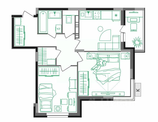 Перед вами двухкомнатная распашная квартира евро-планировки в ЖК Аурум, окна которой выходят сразу на обе стороны дома. Заходим внутрь и попадаем в просторную, изолированную от жилых комнат прихожую. Там же имеется вход в отдельное помещение для гардероба или хранения хозинвентаря. Далее проходим вперед и попадаем в жилое пространство. Давайте осмотримся. Перед вами совмещенная кухня-гостиная площадью более 17 квадратных метров, в которой можно разместить угловой кухонный гарнитур, оборудовать столовую зону и ТВ-зону для отдыха. По соседству с кухней-гостиной мы видим также первую отдельную комнату площадью 17 квадратных метров, которую можно использовать в качестве детской или кабинета. Отличительной особенностью этой квартиры является наличие мастер-спальни с отдельным санитарным блоком, в котором поместится душевая кабина, унитаз и раковина. Во втором, отдельном санузле, свободно поместится ванная, унитаз, раковина и стиральная машина. Также в спальной предусмотрено место для вместительного шкафа для хранения одежды, двуспальной кровати и письменного стола. Имеется и выход на теплую лоджию площадью более 3,5 квадратных метров. Ее можно комфортно использовать не только в теплое, но и в холодное время года. Доступны такие способы покупки, как наличные, ипотека от ведущих банков (в т.ч. все программы с субсидиями и господдержка). В цену квартиры сразу входит ремонт в формате White Box с гарантией на все работы!