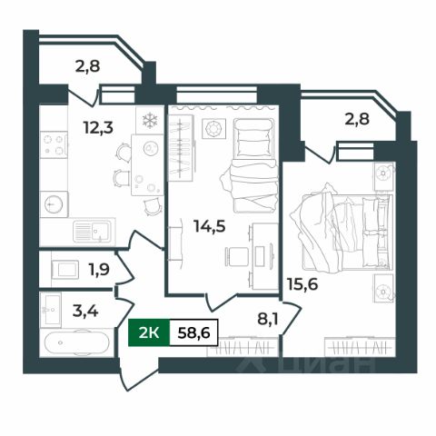 Особенностью этой двухкомнатной квартиры является объединенная с кухней гостиная общей площадью почти 20 квадратных метров! Помещение разделено на зоны для приготовления пищи, где можно установить кухонный гарнитур и большой обеденный стол для всей семьи, и ТВ-зону, где поместится хороший просторный диван. Из кухни имеется выход на лоджию (больше 3 кв. м.), которая будет остеклена 2-камерным стеклопакетом при сдаче дома. При такой планировке совмещенной кухни и гостиной, неоспоримым преимуществом этой двухкомнатной квартиры являются две отдельные комнаты. Одну из них, можно использовать под спальную комнату, где можно установить широкую кровать или раскладной диван и вместительный шкаф для одежды. А вторую комнату можно использовать в качестве детской или кабинета. Интересным и полезным решением в этой двухкомнатной квартире стали два санузла! Один - полноценный, площадью больше 5,5 квадратных метра, где можно установить раковину, ванну или душевую кабину, а второй - небольшой, площадью 2,2квадратных метра, с отдельным унитазом. Для семьи с детьми - очень актуальное решение.Отдельное внимание стоит обратить на помещение рядом с большим санузлом в нём можно организовать отдельную постирочную комнату или гардеробную. В изолированной прихожей площадью 9 квадратных метров предусмотрено место для установки шкафа для хранения верхней одежды и обуви. Доступны такие способы покупки, как наличные, ипотека от ведущих банков (в т.ч. все программы с субсидиями и господдержка), ипотека со снижением ставки за счёт застройщика, рассрочка до 2 лет напрямую от застройщика. В цену квартиры сразу входит ремонт в формате White Box с гарантией на все работы! Продается 2-комнатная квартира на 2 этаже в Коврове.