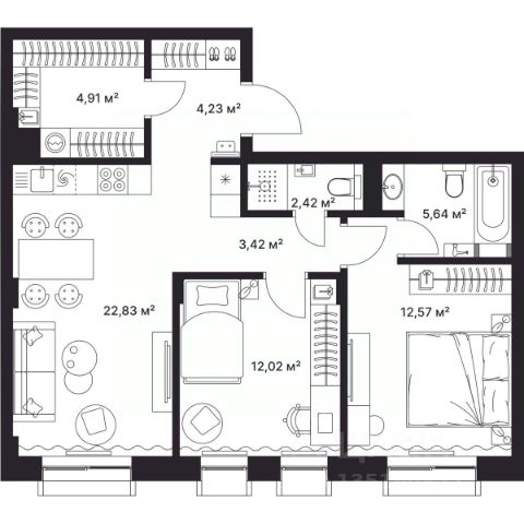 ЖК "Гагарин" — ваш идеал комфортной жизни в Киржаче! Расположенный на центральной улице Свердлова 10А, ЖК класса "Комфорт +" сочетает современные технологии, продуманную инфраструктуру и уютную атмосферу, продолжает программу формирования нового стандарта качества жизни в мкрн Красный Октябрь, г. Киржач, которую развивает ТПХ "РУСКЛИМАТ". Уникальные особенности и преимущества ЖК "Гагарин": - 78 квартир / 8 коммерческих помещений / 57 парковочных мест - Монолитный дом. Возведение дома производится по монолитной технологии. Такие дома являются самыми надежными и долговечными даже в условиях сейсмической активности. Риск протечек от соседей сверху значительно снижается. Благодаря монолитной технологии внутреннее пространство надежно защищено от проникновения холода зимой и жары летом, а так же обеспечивает высокую степень шумоизоляции. - Вентилируемый фасад. Современные технологии вентилируемых фасадов с отделкой клинкерным кирпичом создают не только привлекательный экстерьер, но и гарантируют увеличение общей теплоизоляции помещений, повышают звукоизоляцию и пожароустойчивость. - Высококачественная отделка. Класс проекта Комфорт плюс обеспечивает повышенные требования к качеству жилого комплекса и включение в проект ряда опций, соответствующих жилью бизнес-класса при сохранении демократичной цены. - Технологический комфорт. Бесшумные современные лифты и оснащение квартир передовыми инженерными системами. - Возможность установки системы "Умный дом". Домофоны, интеллектуальные отопление и кондиционирование, увлажнение и очистка воздуха, теплый пол, приточно-вытяжная вентиляция. - Отделка подъездов. Безукоризненный стиль интерьеров общественных пространств и использование высококачественных материалов. Каминные группы, места для хранения колясок и велосипедов во входных группах подъездов. - Без барьерная среда. Входы в подъезды и коммерческие помещения выполнены встык по уровню пола с улицей и двором, без порогов и ступеней. - Предчистовая отделка White Box. Дом сдаётся с уже выполненной предчистовой отделкой квартир, что позволит существенно сократить время на ремонт и ускорить новоселье. - Эргономичные планировки квартир. Широкий выбор планировочных решений от компактных студий 28м2 до просторных 3к квартир 114м2 с просторными кухнями-гостиными, гардеробными и гостевыми сан-узлами. Продуманные варианты расстановки мебели для всей семьи. - Коммерческие помещения на первом этаже. Просторные пространства от 70 до 207 м² с потолками 4,2м на первом этаже для размещения уютных магазинов формата "У дома" - "ВкусВилл, "Азбука Вкуса" и т.д., пекарен и кондитерских с кофейнями, салонов красоты, отделения банка Сотрудники компаний-резидентов Технопарка РУСКЛИМАТ обеспечивают постоянный высокий траффик и большой оборот! - Собственная благоустроенная, огороженная, охраняемая территория с озеленением. - Парковка. Охраняемая зона с видео-наблюдением 24/7 - Активный отдых. Современные детские площадки премиум-класса, спортивная площадка WORK-OUT, настольны Продается 2-комнатная квартира на 5 этаже в Киржаче.