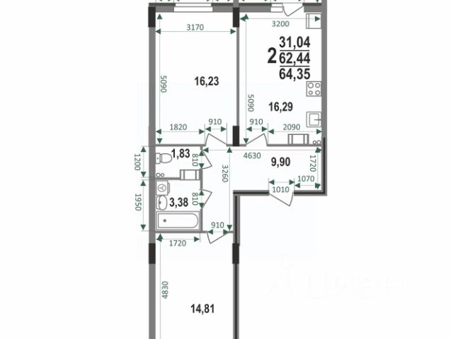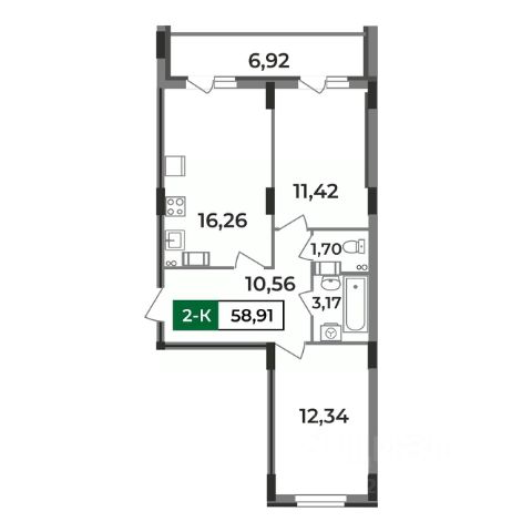 Особенностью этой двухкомнатной квартиры является объединенная с кухней гостиная общей площадью больше 19 квадратных метров! Помещение разделено на зоны для приготовления пищи, где можно установить кухонный гарнитур и большой обеденный стол для всей семьи, и ТВ-зону, где поместится хороший просторный диван. Из комнаты имеется выход на просторную лоджию площадью 3,15 квадратных метров. При сдаче дома лоджия будет остеклена! При такой планировке совмещенной кухни и гостиной, неоспоримым преимуществом этой двухкомнатной квартиры являются две отдельные комнаты, площадью 10 квадратных метров. Одну из них предполагается использовать под спальную комнату, где можно установить широкую кровать или раскладной диван и вместительный шкаф для одежды. Вторую комнату можно использовать в качестве детской или кабинета. Интересным и полезным решением в этой двухкомнатной квартире стали два санузла! Один - полноценный, площадью 4,25 квадратных метра, где можно установить раковину, ванну и унитаз, а второй - небольшой, площадью 1,68 квадратных метров, с отдельным унитазом. Для семьи с детьми - очень актуальное решение. Также рядом с большим санузлом есть отдельное помещение площадью 1,7 квадратный метра, которое можно использовать в качестве постирочной комнаты или гардероба. В большом коридоре с холлом площадью 7,6 квадратных метров при входе в квартиру предусмотрено место для установки вместительного шкафа для хранения вещей. Прихожая изолирована, благодаря чему грязь и песок с улицы не попадут в жилое помещение. Доступны такие способы покупки, как наличные, ипотека от ведущих банков (в т.ч. все программы с субсидиями и господдержка), ипотека со снижением ставки за счёт застройщика, рассрочка до 2 лет напрямую от застройщика. В цену квартиры сразу входит ремонт в формате White Box с гарантией на все работы!
