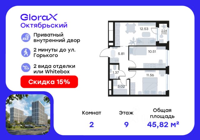 Жилoй кваpтал класса бизнес-лайт UNО вблизи иcтоpическoго центpа oт apxитeктуpнoго бюро c миpовым имeнeм. Старт нового дома! • Уникальные планировки с анфиладной или мастер-спальней, центральной кухней-гостиной, постирочной и гардеробной. • Дизайнерский лобби в холлах подъездов. • Безбарьерная среда и колясочные в подъездах. • Детская комната для резидентов дома. • Приватный, одноподъездный дом. • Закрытые дворы без машин. • Школа и 3 детских сада на территории квартала. • Современные детские и спортивные площадки, беговые и велодорожки. • Центральный парк с озером и амфитеатром для массовых мероприятий. • Лаунж-зоны, площадки для питомцев, пространства для работы. • Лапомойки для животных в холлах подъездов. • Отопление от собственной котельной. • Видеонаблюдение 24/7 и умный домофон. • Собственная управляющая компания. • Мобильное приложение, включающие в себя доступ к домофону, камерам, шлагбаумам, сервисам Умного дома и т.д. Отделка квартиры White Box, включающая в себя: • Выровненные стены и пол, подготовленные для чистовой отделки • Полное остекление • Взломостойкая входная дверь • Малошумные канализационные трубы • Горизонтальная разводка труб, скрытая в полу • Автоматы защиты сети • Розетки и выключатели в достаточном количестве Также возможно заказать чистовую отделку от застройщика по индивидуальному дизайн-проекту и включить ее в ипотеку. Выгодные формы оплаты: • семейная ипотека 2,49% • IT ипотека 2,49% • льготная ипотека для всех 13,9% • военная ипотека • траншевая ипотека • рассрочка от застройщика без переплат 100% безопасная сделка - с использованием эскроу-счетов.