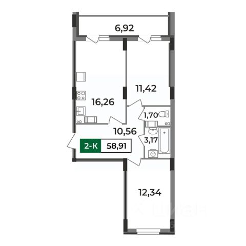 Особенностью этой двухкомнатной квартиры является объединенная с кухней гостиная общей площадью 21 квадратный метр! Помещение разделено на зоны для приготовления пищи, где можно установить кухонный гарнитур и большой обеденный стол для всей семьи, и ТВ-зону, где поместится хороший просторный диван. Из кухни имеется выход на просторную лоджию площадью 3,3 квадратных метра. При сдаче дома лоджия будет остеклена!При такой планировке совмещенной кухни и гостиной, неоспоримым преимуществом этой двухкомнатной квартиры являются две отдельные комнаты. Одну из них, площадью 11,3 квадратных метра, можно использовать под спальную комнату, где можно установить широкую кровать или раскладной диван и вместительный шкаф для одежды. Вторую комнату, площадью 11,5 квадратных метров, можно использовать в качестве детской или кабинета. Интересным и полезным решением в этой двухкомнатной квартире стали два санузла! Один - полноценный, площадью 4,6 квадратных метра, где можно установить раковину, ванну и стиральную машину, а второй - небольшой, площадью 1,6 квадратных метра, с отдельным унитазом. Для семьи с детьми - очень актуальное решение. Также рядом с большим санузлом есть отдельное помещение площадью 1,6 квадратных метра, которую можно использовать в качестве постирочной комнаты или гардероба.Прихожая (площадью почти 8 кв. м.) является непроходной. Изолированность прихожей позволяет держать в чистоте остальные помещения квартиры грязь с улицы не будет разноситься по комнатам. Доступны такие способы покупки, как наличные, ипотека от ведущих банков (в т.ч. все программы с субсидиями и господдержка). В цену квартиры сразу входит ремонт в формате White Box с гарантией на все работы!