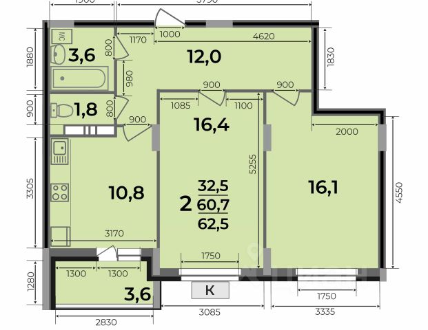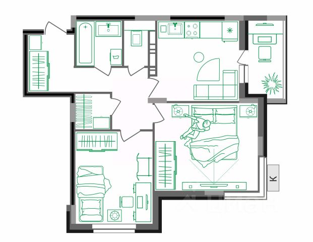 Двухкомнатная квартира-распашонка площадью 54,75 кв.м — это одна из самых востребованных планировок среди покупателей, так как квартиру удобно проветривать, окна выходят на обе стороны дома. В квартире кухня площадью 12,17 кв.м с выходом на лоджию, раздельный санузел, 2 спальни. ЖК Триумфальный в Славном въезде в микрорайон на первой линии улицы Еловой и является визитной карточкой всего микрорайона. Именно от этого дома начинается центральная пешеходная аллея, ведущая к центральной площади. - монолитный тип строительства - 12 жилых этажей + тех.этаж - отопление - крышная газовая котельная - дизайнерская отделка подъездов - двор без машин - современные детские и спортивные площадки с резиновым покрытием Планируемый срок ввода: III квартал 2026 г. Все квартиры сдаются с первичной отделкой: штукатурка стен, на полу стяжка, установка оконных блоков из ПВХ (с подоконной доской и откосами), установка входной двери, устройство системы отопления квартиры, устройство стояков холодного/горячего водоснабжения с установкой поквартирных счетчиков. Квартиру можно приобрести несколькими способами: - Ипотека - Рассрочка - Обмен старой квартиры на новую по программе Трейд Ин - Материнский капитал, жилищные сертификаты ООО Специализированный застройщик "СК Континент". Проектная декларация на сайте наш.дом.pф Цена указана с учетом максимальной скидки. Подробный расчет по телефону или в офисе продаж застройщика.