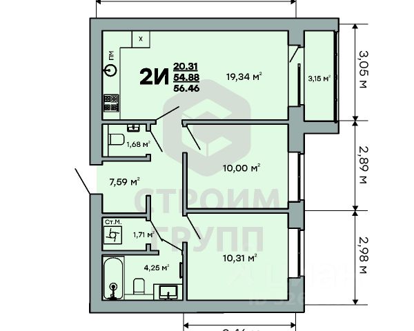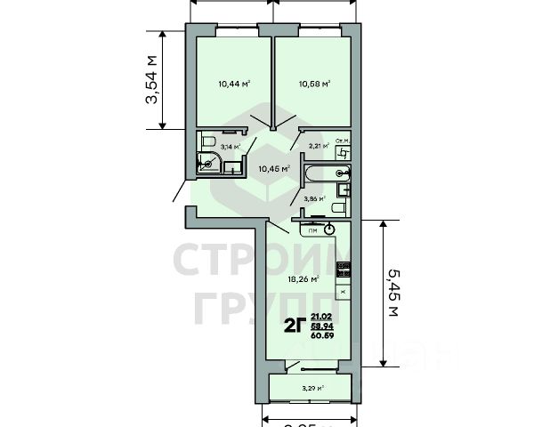 Особенностью этой двухкомнатной квартиры является объединенная с кухней гостиная общей площадью больше 18 квадратных метров! Помещение разделено на зоны для приготовления пищи, где можно установить кухонный гарнитур и большой обеденный стол для всей семьи, и ТВ-зону, где поместится хороший просторный диван. Из кухни имеется выход на просторную лоджию площадью 3,3 квадратных метра. При сдаче дома лоджия будет остеклена! При такой планировке совмещенной кухни и гостиной, неоспоримым преимуществом этой двухкомнатной квартиры являются две отдельные комнаты. Одну из них можно использовать под спальную комнату, где можно установить широкую кровать или раскладной диван и вместительный шкаф для одежды. Вторую комнату можно использовать в качестве детской или кабинета. Интересным и полезным решением в этой двухкомнатной квартире стали два полноценных санузла! В первом предусмотрено место для ванной, во втором для душевой кабины. Для семьи с детьми - очень актуальное решение. Обратите внимание - рядом с большим санузлом есть отдельное помещение площадью 2,2 квадратных метра, которое можно использовать в качестве постирочной комнаты или гардероба. Просторная прихожая является непроходной. Изолированность прихожей позволяет держать в чистоте остальные помещения квартиры грязь с улицы не будет разноситься по комнатам. Доступны такие способы покупки, как наличные, ипотека от ведущих банков (в т.ч. все программы с субсидиями и господдержка), ипотека со снижением ставки за счёт застройщика, рассрочка до 2 лет напрямую от застройщика. В цену квартиры сразу входит ремонт в формате White Box с гарантией на все работы!