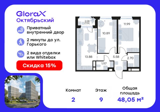 Продается 2-комнатная квартира 303 в Квартале "Новаторов" комфорт-класса. Отделка: Квартиры сдаются в предчистовой отделке: чистовая стяжка, гипсовая штукатурка в комнатах и коридоре, электроразводка по квартире. Обязательное остекление всех лоджий и установка качественных входных дверей, не требующих замены. О проекте: Квартал "Новаторов" — это среднеэтажный жилой комплекс с современной архитектурой, зелёным двором, полезными сервисами на первых этажах и собственной парковкой. Проект сочетает городской комфорт и природное окружение. Расположение: Квартал находится в развивающемся районе Веризино: новые скверы, развязка, школа сделают микрорайон более привлекательным с точки зрения инфраструктуры. Комплекс обещает стать центром притяжения не только для жителей Веризино, но и для всего города. Инфраструктура: - Торгово-развлекательный комплекс "Веризино-Цвет-Сквер" в шаговой доступности: магазины, кафе, детские развлечения, услуги красоты и бытовые сервисы. - Крупные торговые центры поблизости: "Тандем", "Ивановские мануфактуры", "Глобус". Финансирование: Проект финансируется ПАО "Сбербанк". Заключение ДДУ с размещением денежных средств клиента на эскроу-счете банка. Условия покупки: - Ипотека, материнский капитал. - Скидки при полной оплате. - Рассрочка. Запишитесь на онлайн-презентацию или получите консультацию по телефону. Купить 2-комнатную квартиру с отделкой от застройщика в районе Октябрьский в городе Владимир.