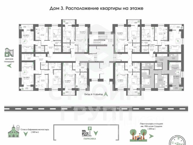 Новый проект от Строим Групп - жилой комплекс Всполье в самом известном туристическом городе России! ЖК Всполье в Суздале это три полностью кирпичных дома, расположенных рядом с одноименной улицей. Отличительной особенностью этого жилого комплекса является присущее компании Строим Групп внимание к деталям. Так, территория комплекса будет огорожена для спокойствия и безопасности жильцов, а на территории помимо самих домов будет размещена просторная парковка и детская площадка с резиновым покрытием. На территории, как и в подъездах, проектом предусмотрено круглосуточное видеонаблюдение. Но самое главное - все квартиры в ЖК Всполье будут сданы с отделкой от застройщика, стоимость которой уже входит в цену квартиры! А купить квартиру в ЖК Всполье можно как в ипотеку с применением любых субсидий, так и за наличный расчет всего за 1 день