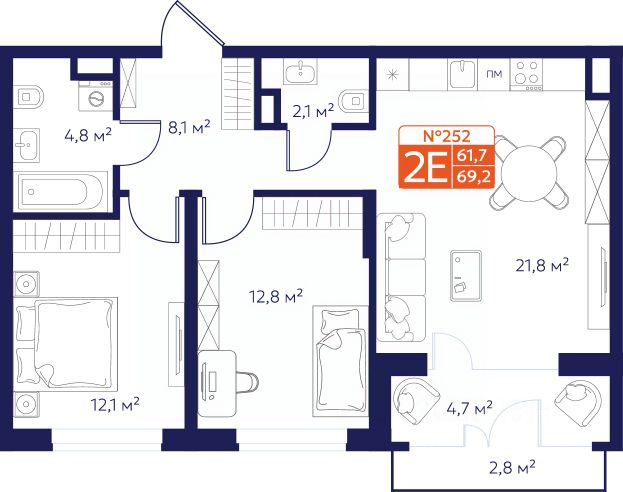 Продается 2-комнатная квартира 136 в Квартале "Новаторов" комфорт-класса. Отделка: Квартиры сдаются в предчистовой отделке: чистовая стяжка, гипсовая штукатурка в комнатах и коридоре, электроразводка по квартире. Обязательное остекление всех лоджий и установка качественных входных дверей, не требующих замены. О проекте: Квартал "Новаторов" — это среднеэтажный жилой комплекс с современной архитектурой, зелёным двором, полезными сервисами на первых этажах и собственной парковкой. Проект сочетает городской комфорт и природное окружение. Расположение: Квартал находится в развивающемся районе Веризино: новые скверы, развязка, школа сделают микрорайон более привлекательным с точки зрения инфраструктуры. Комплекс обещает стать центром притяжения не только для жителей Веризино, но и для всего города. Инфраструктура: - Торгово-развлекательный комплекс "Веризино-Цвет-Сквер" в шаговой доступности: магазины, кафе, детские развлечения, услуги красоты и бытовые сервисы. - Крупные торговые центры поблизости: "Тандем", "Ивановские мануфактуры", "Глобус". Финансирование: Проект финансируется ПАО "Сбербанк". Заключение ДДУ с размещением денежных средств клиента на эскроу-счете банка. Условия покупки: - Ипотека, материнский капитал. - Скидки при полной оплате. - Рассрочка. Запишитесь на онлайн-презентацию или получите консультацию по телефону. Продается 2-комнатная квартира с отделкой в Владимире.