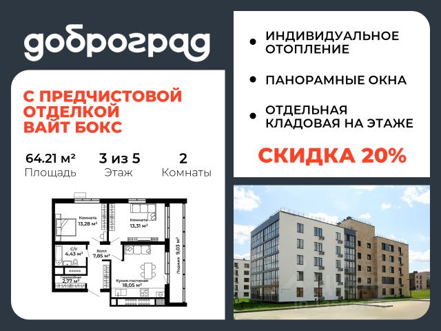 Подходит под Семейную и ИТ ипотеку со ставкой 6%! ЖК "Гагарин" — ваш идеал комфортной жизни в Киржаче! Расположенный на центральной улице Свердлова 10А, ЖК класса "Бизнес" сочетает современные технологии, продуманную инфраструктуру и уютную атмосферу, продолжает программу формирования нового стандарта качества жизни в мкрн Красный Октябрь, г. Киржач, которую развивает ТПХ "РУСКЛИМАТ". Уникальные особенности и преимущества ЖК "Гагарин": Монолитный дом. Возведение дома производится по монолитной технологии. Такие дома являются самыми надежными и долговечными даже в условиях сейсмической активности. Риск протечек от соседей сверху значительно снижается. Благодаря монолитной технологии внутреннее пространство надежно защищено от проникновения холода зимой и жары летом, а так же обеспечивает высокую степень шумоизоляции. Вентилируемый фасад. Современные технологии вентилируемых фасадов с отделкой клинкерным кирпичом создают не только привлекательный экстерьер, но и гарантируют увеличение общей теплоизоляции помещений, повышают звукоизоляцию и пожароустойчивость. Высококачественная отделка. Класс проекта Бизнес обеспечивает повышенные требования к качеству жилого комплекса и включение в проект ряда опций, соответствующих жилью бизнес-класса при сохранении демократичной цены. Технологический комфорт. Бесшумные современные лифты и оснащение квартир передовыми инженерными системами. Возможность установки системы "Умный дом". Домофоны, интеллектуальные отопление и кондиционирование, увлажнение и очистка воздуха, теплый пол, приточно-вытяжная вентиляция. Отделка подъездов. Безукоризненный стиль интерьеров общественных пространств и использование высококачественных материалов. Каминные группы, места для хранения колясок и велосипедов во входных группах подъездов. Без барьерная среда. Входы в подъезды и коммерческие помещения выполнены встык по уровню пола с улицей и двором, без порогов и ступеней. Предчистовая отделка White Box. Дом сдаётся с уже выполненной предчистовой отделкой квартир, что позволит существенно сократить время на ремонт и ускорить новоселье. Эргономичные планировки квартир. Широкий выбор планировочных решений с просторными кухнями-гостиными, гардеробными и гостевыми сан-узлами. Продуманные варианты расстановки мебели для всей семьи. Коммерческие помещения на первом этаже. Просторные пространства с потолками 4,2м на первом этаже для размещения уютных магазинов формата "У дома" - "ВкусВилл, "Азбука Вкуса" и т.д., пекарен и кондитерских с кофейнями, салонов красоты, отделения банка Сотрудники компаний-резидентов Технопарка РУСКЛИМАТ обеспечивают постоянный высокий траффик и большой оборот! Собственная благоустроенная, огороженная, охраняемая территория с озеленением. Парковка. Охраняемая зона с видео-наблюдением 24/7 Активный отдых. Современные детские площадки премиум-класса, спортивная площадка WORK-OUT, настольный теннис. Супер-современный фитнесс-клуб "РУСФИТ" и парк "ТЕХНОСАД" в шаговой доступности! Безопасность. О