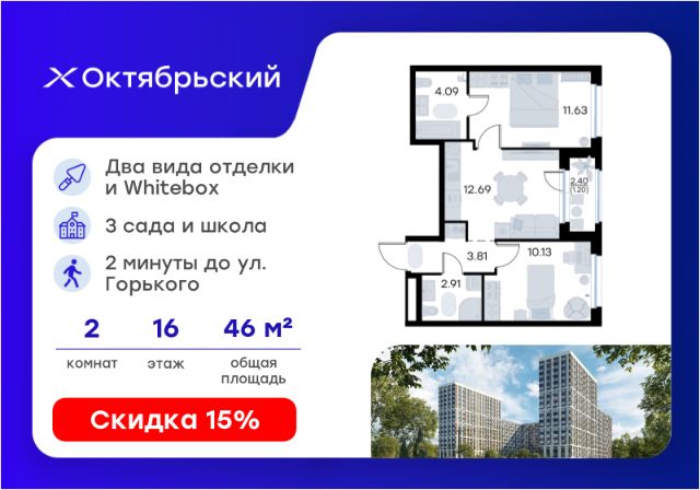 2-комнатные квартиры в жилом комплексе ОктябрьскийЖК «Октябрьский»