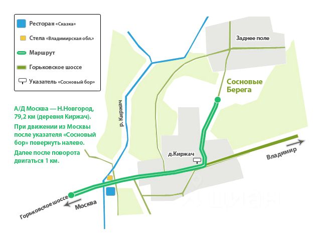 До Горьковского шоссе (трасса М7) 8 км.