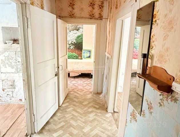 Состояние дома под ремонт, пустует долгое время. Требуется обновление забора вокруг участка и уборка поросли (терновник, ирга, малина, шиповник).