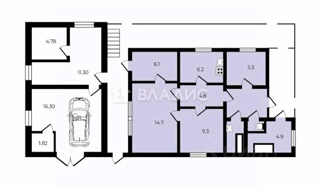 Большой дом вместил в себя гостиную, гостевые комнаты, хозяйственные помещения, отапливаемый гараж (21 кв м).