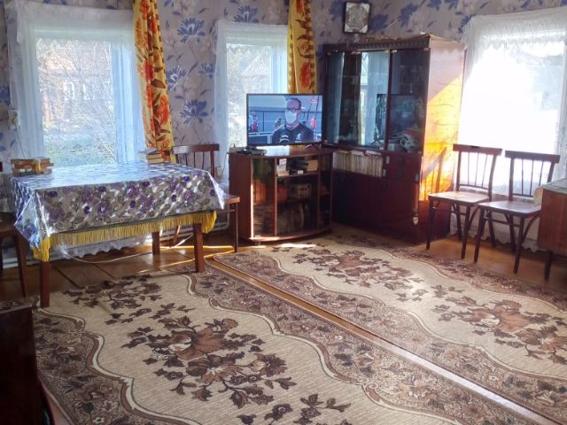 На нижнем этаже расположены: зал площадью 25.7кв. м., две спальных комнаты 16.8 и 14.0 кв. м., кухня 19.0 кв. м., русская печь 1,5х1,5 м. Высота потолков 2,7 м. Окна - деревянные, стандартные по ГОСТУ СССР, двухстворчатые, распашные.