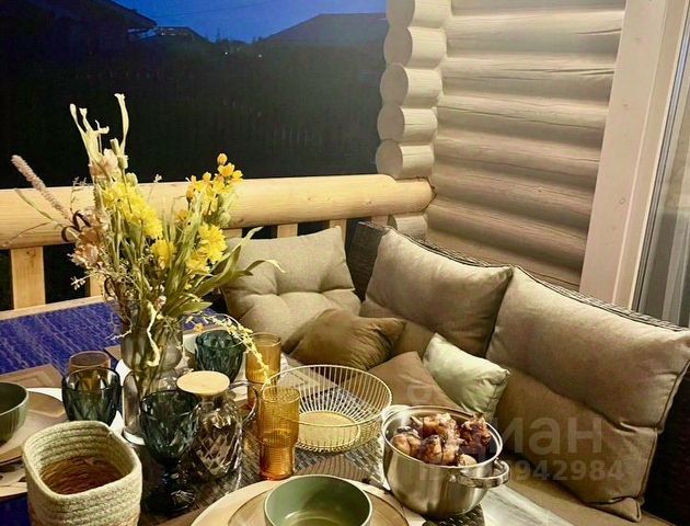 Планировка: прихожая, кухня-гостиная с панорамным остеклением и выходами на террасу, две спальни, совмещенный санузел и БАНЯ НА ДРОВАХ, описание которой требует особого внимания.