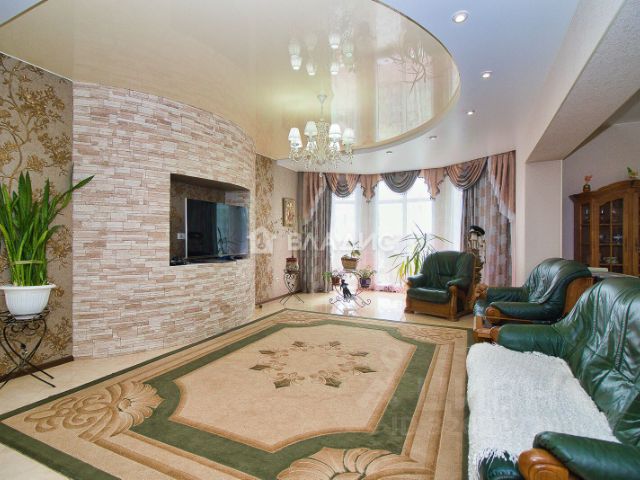 На кухне установлен гарнитур фабрики "Мария", в гостиной окна сделаны "в пол".