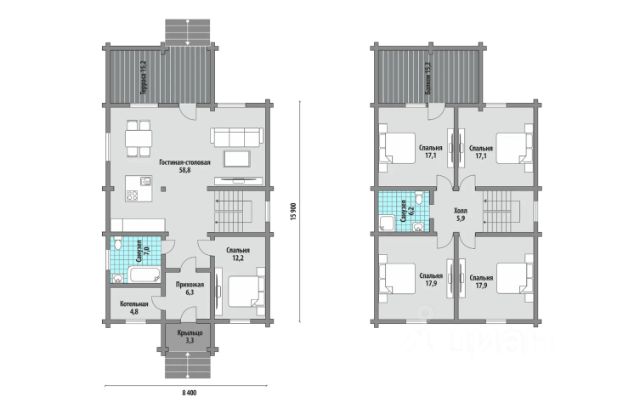 Продается дом из оцилиндрованного бревна в коттеджном поселке бизнес-класса ДПК "Лесные озера". Площадь дома с террасой 165 м2. В доме: газ, вода-скважина, установлена очистка воды, канализация-септик, электричество, интернет. На первом этаже: просторная кухня-гостинная с выходом на застекленную террасу, гостевая спальня, санузел, бойлерная. На втором этаже: 4 комнаты, застеклённый балкон, и комната для санузла. С наружи дом покрашен и имеет теплый шов. По периметру произведена отмостка и ливневая канализация. Площадь земельного участка 10 соток . Участок выровнен и произведены дренажные работы. На участке расположен гараж из оцилиндрованного бревна на две машины с автоматическими воротами, площадью 51 м2. Гараж оснащён электричеством. В 7 минутах ходьбы находятся : озеро с пляжем , озеро для рыбалки , две детские площадки , теннисный корт, хоккейная коробка, футбольное поле , магазин. На территории посёлка есть : храм, два магазина, ресторан , пекарня, детский клуб, салон красоты, детские и спортивные площадки , 4 озера , два пляжа , рыбалка , посты охраны , видеонаблюдение и патрулирование. Дороги асфальтированы . Посёлок окружён лесом . Рядом расположены сетевые магазины : Пятерочка, Верный, Магнит . В 12 километрах находится город Струнино с ж/д станцией , продовольственными и хозяйственными рынками, автомойкой, новой поликлиникой . Один взрослый собственник , быстрый выход на сделку .