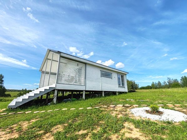 Баня-гостевой дом: Водопровод заведен (из скважины), горячая вода от электрического водонагревателя. Канализация заведена - рядом с баней яма из автомобильных шин. Электричество заведено и разведено по помещениям. Отопление комнаты (блочная пристройка) от железной печи.