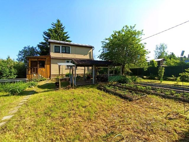 Продаётся двухэтажный садовый дом, общей площадью 98.1 м2., жилой 63 м2., на ровном участке в СНТ Энтузиаст. Хорошая транспортная доступность из Москвы 68 км., по Щелковскому или Ярославскому шоссе. ДОМ 98.1 м² Двухэтажный дом, стены первого этажа бревно, плюс утепление 50 мм., на фундаменте из ФБС подвал, декоративный цоколь .Второй этаж каркасто брусовой утепленный 150 мм.. и вес дом общит сайдингом, пол первого этажа утеплен. Кровля перекрыта оцинкованным железом. Входная дверь пластиковая с остеклением . Окна во всем доме ПВХ - однокамерные стеклопакеты (2 стекла). Планировка: Первый этаж: большая кухня-гостиная 27 м2., три комнаты 9-9-18 м2.. Второй этаж: холл 7 м2, две комнаты 10-17 м2.. Все комнаты первого и второго этажа отапливаются электро конвекторами. Отдельно стоящее строение приспособлено под прачечную и теплую душевую с электро титаном, с/у на улице. КОММУНИКАЦИИ Электричество, вода централизованный водопровод, септик, электро нагреватели в кухне и душевой. УЧАСТОК 7.2 сот. Ровный, сухой, прямоугольной формы, огорожен с плодовыми деревьями и кустарниками На участке расположена беседка 20 м2., теплица 18 м2., грядки с клубникой, металлический гараж. РАСПОЛОЖЕНИЕ. СНТ Энтузиаст расположено рядом с д. Мележи до г. Киржач и в 68 км. от г. Москва по Щелковскому или Ярославскому шоссе. Подъезд до СНТ асфальтированный, в СНТ дороги грунтовые, зимой чистят. Товарищество огорожено. Тихое, красивое место, рядом грибной лес, два километра до реки Шерна.