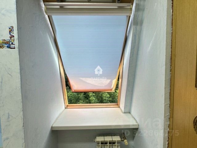 В детской - рулонные шторы на большом окне и на мансардном окне.