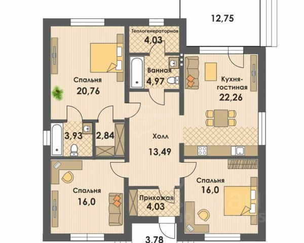 Код объекта: 1645895. Постройте дом своей мечты! Уютный одноэтажный каркасный дом, с деревянными перекрытиями и металл черепичной кровлей. Дом будет оснащён электрическим отоплением, комнаты имеют площадь 20 и 15 кв. м, также есть кухня площадью 6,5 кв. м. Совмещённый санузел. Коммуникации на участке пока не подведённые, дом продаётся без отделки, что даёт возможность новым владельцам реализовать свои дизайнерские идеи. Участок площадью 10,5 соток имеет статус индивидуального жилищного строительства, подъезд к участку — грунтовка. Посёлок находится всего в 15 километрах от города, что обеспечивает удобный доступ к городской инфраструктуре при сохранении спокойствия загородной жизни. Это идеальное предложение для тех, кто ищет возможность построить свой дом мечты с нуля, адаптировав его под свои нужды и предпочтения. Поможем одобрить по семейной ипотеки с сниженной ставкой.
