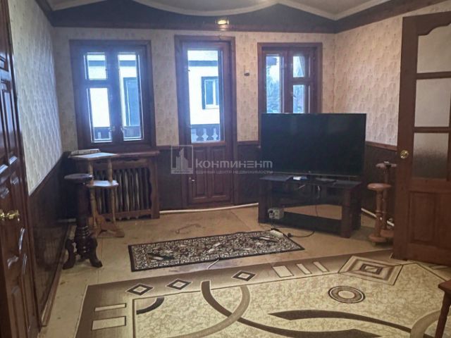 На кухне установлен гарнитур фабрики "Мария", в гостиной окна сделаны "в пол".