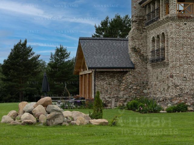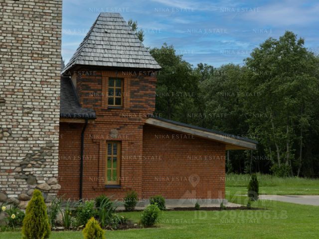 Дом стоит на капитальном фундаменте из ФБС (фундаментные блоки стеновые - одна из разновидностей железобетонных изделий, обладающих внушительным запасом прочности). Крыша также играет важную роль при эксплуатации дома. Собственник к этому вопросу подошел основательно и укрепил крышу дома и навес над парадной брусом, что придало внешнему виду дома надежности и изысканности. Кровля дома выполнена с применением натуральной, минеральной черепицы Braas (производства Германии), которая служит столетиями и со временем только увеличивает прочность, и приобретает неповторимый, благородный облик старины.