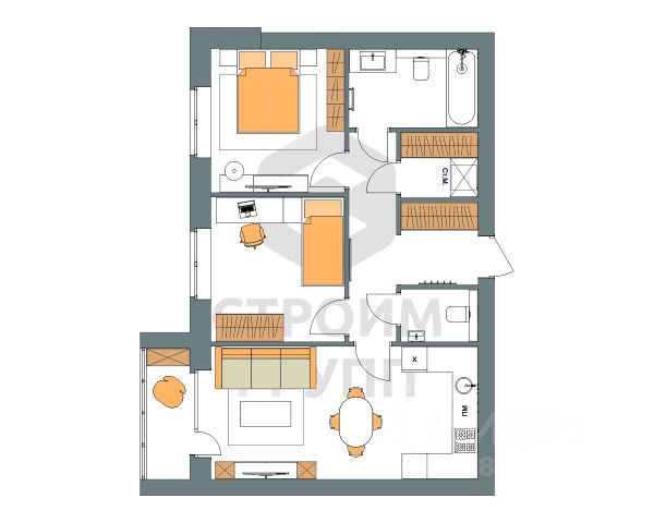 Ключевой особенностью этой однокомнатной квартиры является совмещенная с гостиной кухня общей площадью почти 17 квадратных метров. Это позволяет увеличить полезное пространство, как зоны кухни, так и зоны отдыха в гостиной. Кстати, из кухни имеется выход на просторную лоджию площадью 3,3 квадратных метра. При сдаче дома лоджия будет остеклена.Также благодаря совмещенной кухне с гостиной, в этой 1-комнатной квартире есть отдельная спальня площадью почти 10 квадратных метров. Просторная ванная комната площадью более 3,6 квадратных метра позволяет свободно разместить унитаз, душевую кабину, раковину и стиральную машину. В прихожей площадью 3,6 квадратных метра есть изолированная зона для уличной обуви. Таким образом, грязь и песок не попадут в квартиру. Предусмотрено место для установки шкафа для верхней одежды и обуви. Доступны такие способы покупки, как наличные, ипотека от ведущих банков (в т.ч. все программы с субсидиями и господдержка), ипотека со снижением ставки за счёт застройщика, рассрочка до 2 лет напрямую от застройщика В цену квартиры сразу входит ремонт в формате White Box с гарантией на все работы! Купить квартиру в доме не старше 10 лет в Коврове.