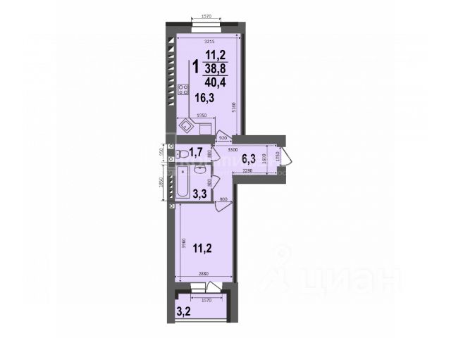Планировкой предусмотрены: кухня-гостиная с лоджией, спальня, ванная комната и гардеробная.