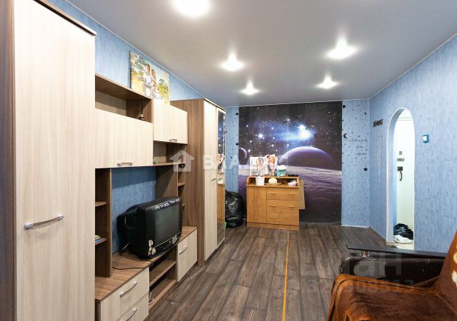 Квартира улучшенной планировки, не угловая , просторная и светлая, общая площадь 32,7 кв.м., кухня 8 кв.м., комната 17 кв.м. , окна ПВХ, балкон застеклен, обшит, отличный вид из окна ,санузел совмещенный, облицованный кафелем, заменены трубы водоснабжения , установлены счетчики учета воды, тамбур на две квартиры.