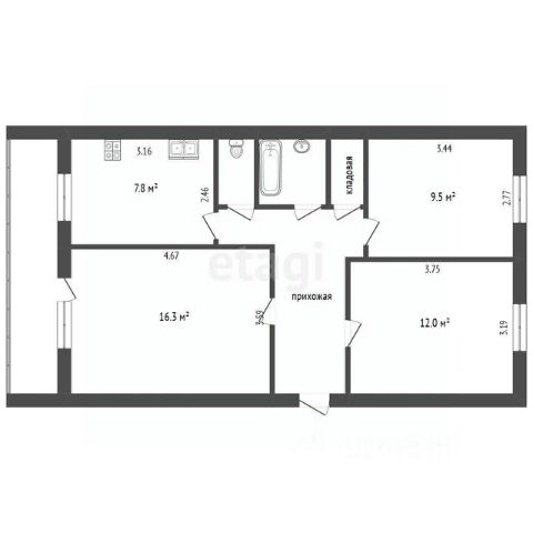Общая площадь 47.1 кв.м.