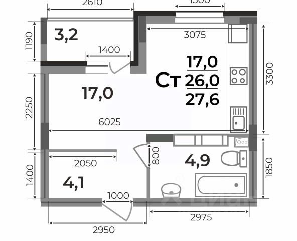 Квартира-студия (27,4 кв.м) - бюджетная квартира для сдачи в аренду или первого собственного жилья. Компактное планировочное решение, совмещенный санузел, просторная лоджия и жилое пространство чуть более 15 кв.м. ЖК Смоленская 3Б - это 17-этажный монолитный дом, строящийся в рамках смарт-квартала VERIZINO life: - современный стильный фасад - дизайнерская отделка подъездов - сквозные подъезды с выходом как во двор, так и на внешнюю сторону дома - в квартирах выполнена черновая отделка - двор без машин и уютными пешеходными, игровыми и спортивными зонами - большое спортивное поле с резиновым покрытием для разных видов спорта - 2 лифта в каждом подъезде - разнообразие планировочных решений - новый детский сад в 400 метрах от дома - рядом заканчивается строительство новой школы - магазины, салоны, детские центры, пункты выдачи интернет-магазинов, остановки Срок сдачи дома: 2 кв.2025 г. Квартиру можно приобрести несколькими способами: - Ипотека - Рассрочка - Обмен старой квартиры на новую по программе Трейд Ин - Материнский капитал, жилищные сертификаты Квартира сдается с качественной черновой отделкой: штукатурка стен, выравнивающая стяжка пола, установка пластиковых окон с подоконниками и откосами, установка входной двери, без электрической разводки. ООО Специализированный застройщик "СК Континент Шестой квартал". Проектная декларация на сайте наш.дом.pф. Цена указана с учетом максимальной скидки. Подробный расчет по телефону или в офисе продаж застройщика.