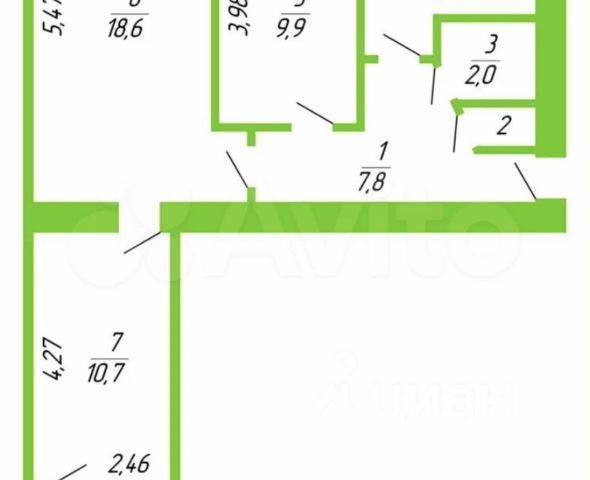 площадь 54.3 кв. м.