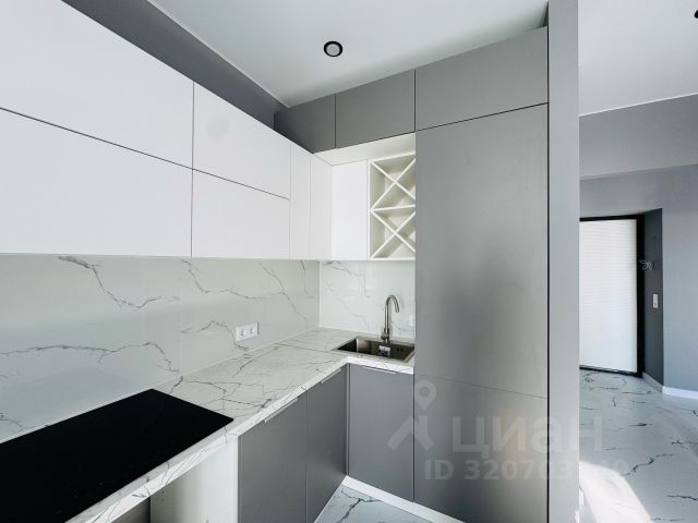 Установлен кухонный гарнитур с техникой ( посудомоечная машина, варочная панель, духовой шкаф, печь СВЧ, вытяжка).