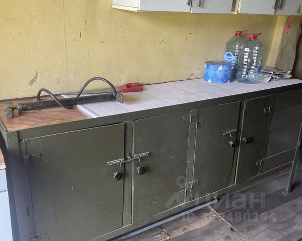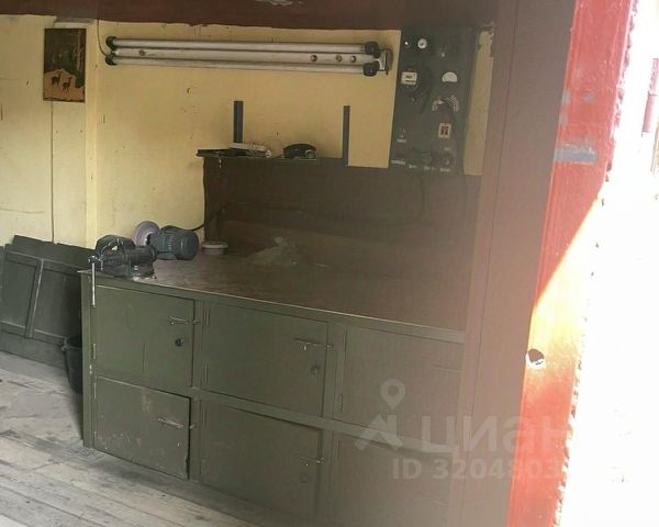 Свет, канализация (туалет, раковина), мебель, шкафы, балка для крана (ручной тали), шторы (прочный брезент), инструмент, верстак, тиски, наждак, эл. обогреватель, печь буржуйка (с дровами) и все что на фото и видео!!!
