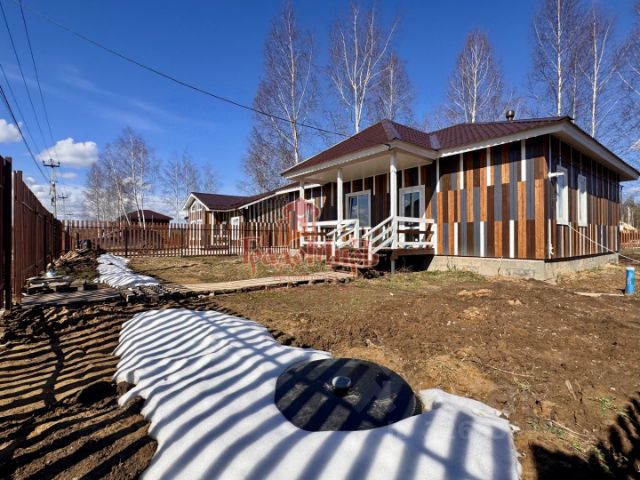 Продается новый одноэтажный дом в деревне Калинино, 90 км от МКАД по Ярославскому шоссе, расстояние до г.Струнино и ж/д станции 5 км. Дом построен по современной каркасной технологии, общая площадь составляет 150 квадратных метров. Дом изнутри обшит имитацией бруса. По всей площади дома разведен теплый пол на водяном контуре от газового котла. Напольное покрытие - керамогранит. Смонтированы натяжные потолки. В санузлах установлена необходимая сантехника. Планировка - удобная, компактная, хорошо продуманная. Просторная кухня-гостиная, 3 уютные спальни, 2 санузла, котельная, гардеробная. Дом подходит для круглогодичного проживания. Коммуникации: Отопление - магистральный газ. Двухконтурный котел, батареи в каждом помещении, теплый пол на водяном контуре. Электричество - подключено 15 кВт. Водоснабжение - индивидуальная зимняя скважина. Канализация - биосептик Руслос . Участок 10 соток, сухой, ровный. На участке растут березы. Дом расположен на тихой деревенской улице, вдали от дорог и шумных трасс. Сама деревня окружена большим лесным массивом с изобилием грибов и ягод. Дороги зимой чистятся. Инфраструктура: недалеко расположены сетевые магазины. На территорию деревни осуществляется доставка Оzоn и Вкусвилл. Возможно использование любой ипотеки: семейной и сельской. Звоните! Приезжайте на просмотр!