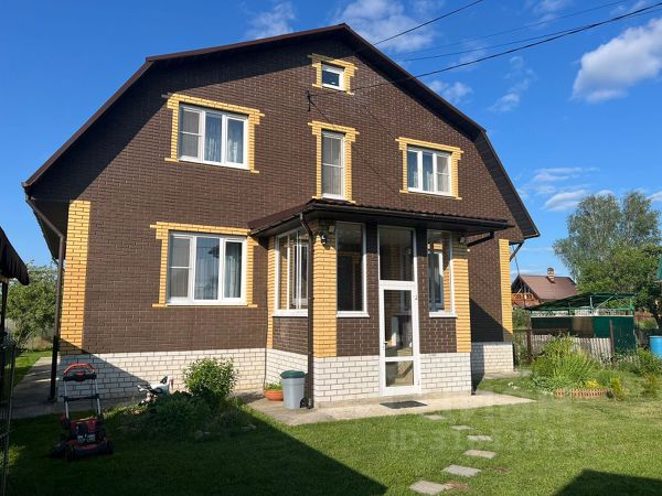 Дом имеет общую площадь 230 кв.м. Построен на ж/б фундаменте, стены - пеноблок, внешняя отделка - облицовочным кирпичом, внутренняя отделка гипсокартон + обои. Кровля металлочерепица. Дом очень теплый, расходы на содержание небольшие. В дом заведен газ, водоснабжение из скважины, канализация переливные колодцы, при постоянном проживании откачка раз в год, отопление водяное от газового котла, также от этого же котла топится и баня с хоз блоком, электричество 3 фазы, кондиционеры на всех этажах, вентиляция. На 1-м этаже: большая гардеробная более 20 кв.м., светлая веранда с панорамным остеклением, зимняя беседка пристроена к дому, 2 санузла, просторная гостиная, кухня со столовой зоной, спальная комната, на 2-м этаже 2 большие спальные комнаты, санузел. Мебель делалась на заказ из массива дерева - и кровати, и шкафы, и мягкая мебель. Красивый вид из окон.