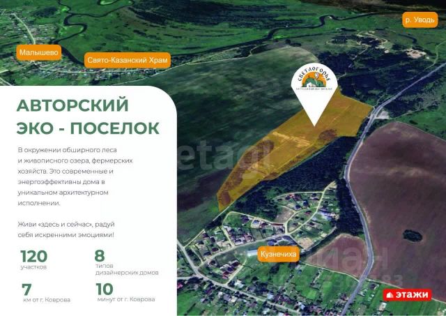 Уникальная возможность для вашего идеального проживания! Предлагаем вам в новом коттеджном Эко-поселке "Светлогорье", расположенном всего в 10 минутах от города Коврова, в живописной деревне Кузнечиха. Это не просто земля — это ваш шанс начать новую жизнь в экологически чистой зоне, где природа и комфорт идут рука об руку. , правильной формы, которые уже размежеваны и готовы к строительству вашего будущего дома. , выполненных с использованием современных каркасных и каменных технологий. обеспечен всеми необходимыми коммуникациями: - Газ - Электричество - Септик и центральная канализация - Центральная скважина с чистой артезианской водой Мы предлагаем выгодные условия покупки: - Рассрочка - Ипотека - Оплата наличными Все документы готовы к продаже, а также действуют специальные предложения: скидки от банков-партнеров и бонусы от нашей компании! Мы гарантируем безопасность вашей сделки и оперативный показ участков. Не упустите шанс стать обладателем идеального участка для вашего будущего дома! Звоните прямо сейчас, и я с удовольствием отвечу на все ваши вопросы! Ваше новое счастье начинается здесь! Код пользователя: 125650 Номер в базе: 7662656