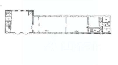 Помещение свободной планировки шириной 12 метров, разделено на три больших зала (130, 151 и 101 кв.м.).