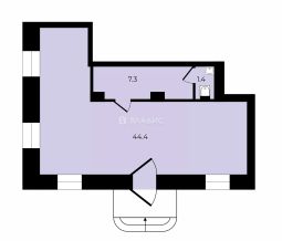 Общая площадь: 50,7 кв. м.
