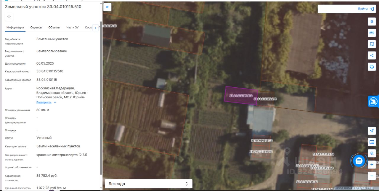 Земельный участок с кадастровым номером 33:04:010115:510, местоположение: Российская Федерация, Владимирская область, Юрьев-Польский район, МО г. Юрьев-Польский (городское поселение), г. Юрьев-Польский, ул. Производственная