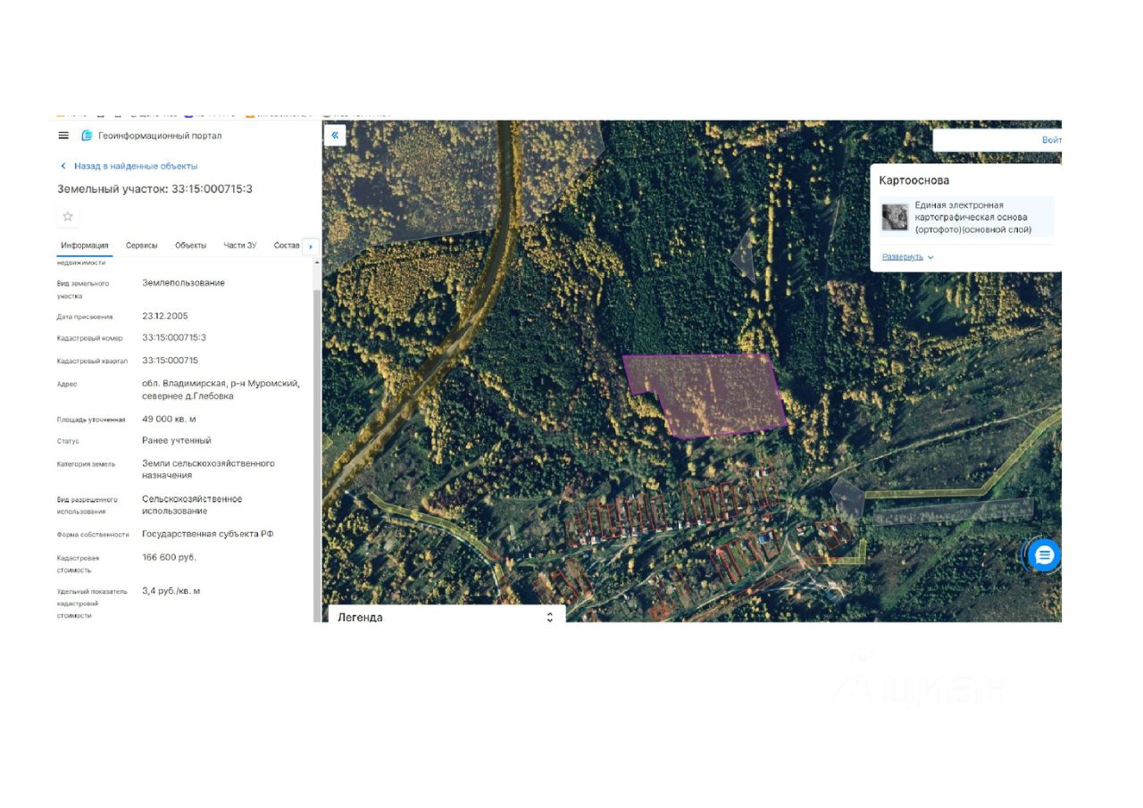 Ежегодная арендная плата за находящийся в государственной собственности Владимирской области земельный участок с кадастровым номером 33:15:000715:3, площадью 49 000 +/- 1937 кв. м, адрес (местоположение): обл. Владимирская, р-н Муромский, севернее д. Глебовка, категория земель земли сельскохозяйственного назначения, вид разрешенного использования Сельскохозяйственное использование