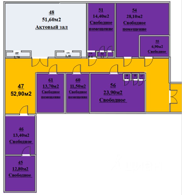 Сдаются помещения в центре города общей площадью 237,5 кв.м., расположенные на 2 этаже административного здания.