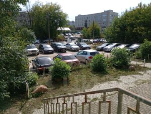 Парковка с фасада и на территории здания.