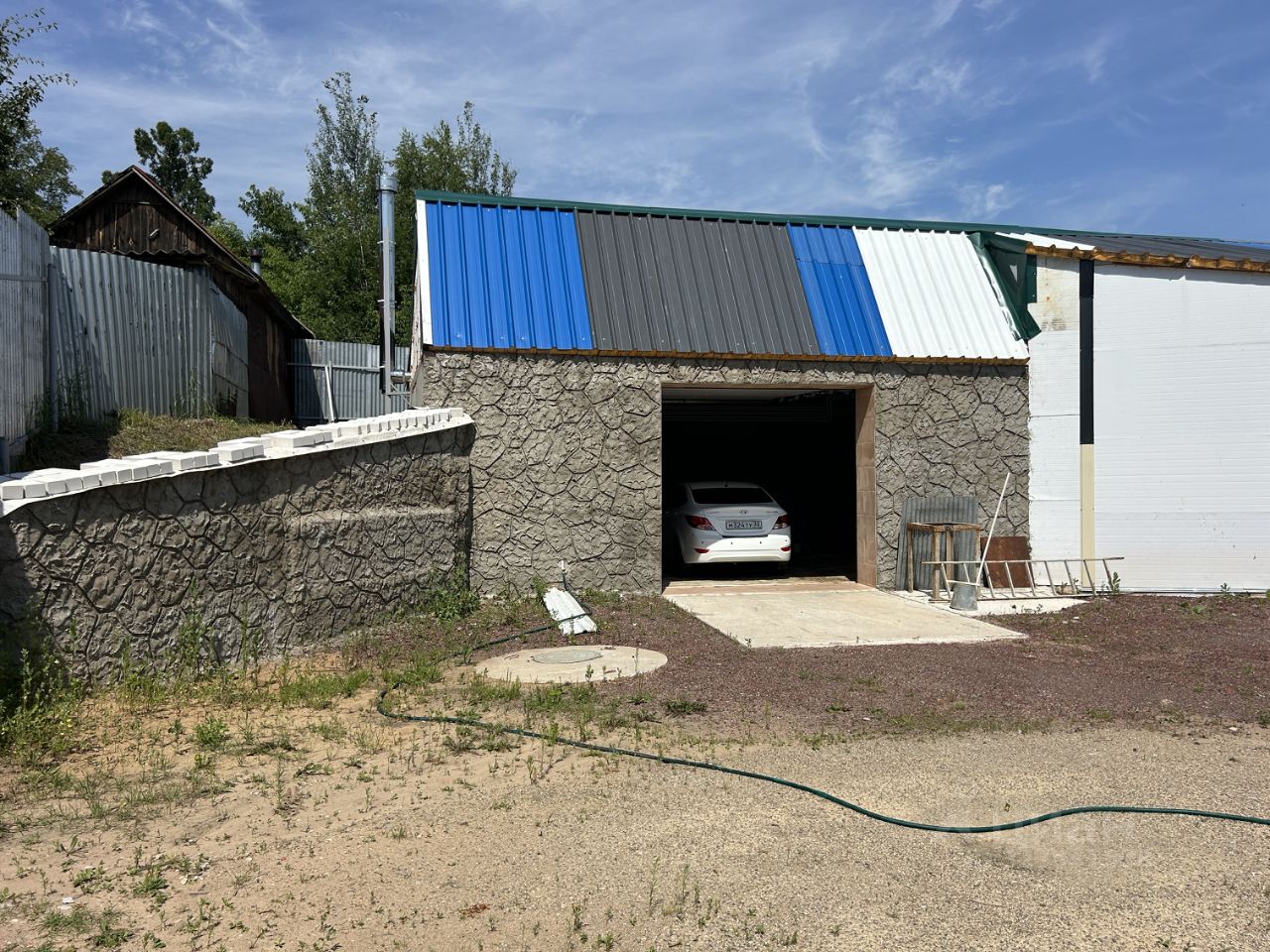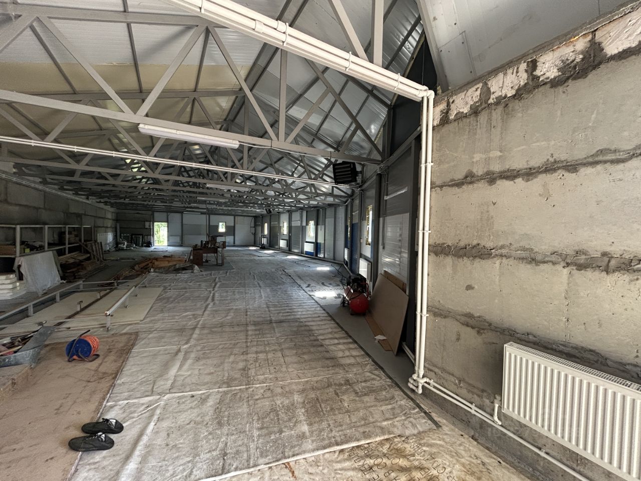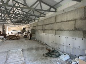 ОБЪЕКТ: Здание построено частично из блоков, и частично из каркаса, обшитого сендвич-панелями. Вставлены окна ПВХ. Проведены все коммуникации (электричество 380 Вольт, вода -скважина 20 метров глубиной, канализация - яма, отопление - установлен твердо-топливный котел, радиаторы расположены по всему периметру здания.) Газа нет. В помещении есть рукомойник, унитаз. Огорожено здание забором из сетки рабицы, по фасаду - заезд - железные ворота.
