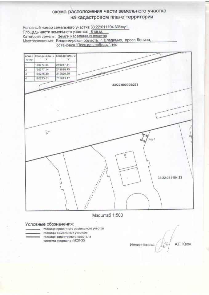 Право заключения договора на размещение нестационарного торгового объекта на части земельного участка по местоположению: Владимирская область, г.Владимир, просп.Ленина, остановка "Площадь Победы", н/с по реализации безалкогольных напитков и мороженого на части земельного участка площадью 6 кв.м