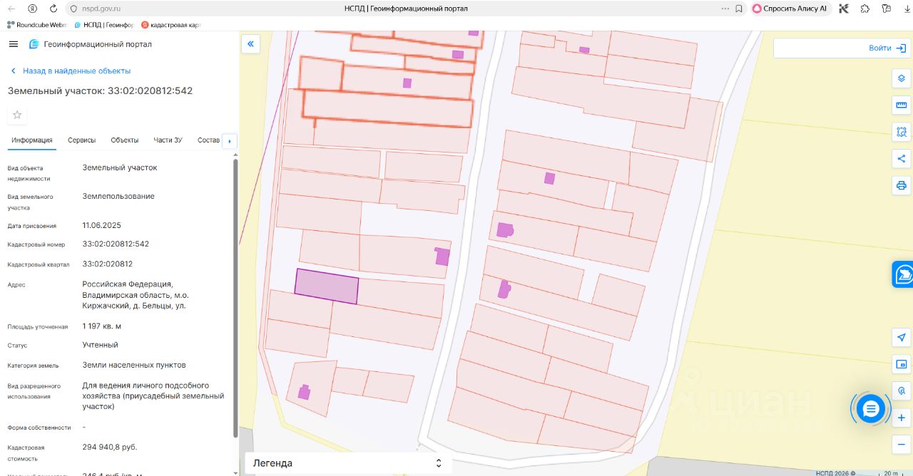 Земельный участок с кадастровым номером 33:02:020812:542, площадью 1197 кв. м, из категории земель населенных пунктов, с разрешенным использованием: для ведения личного подсобного хозяйства (приусадебный земельный участок), расположенный по адресу: Российская Федерация, Владимирская область, Киржачский район, Кипревское (сельское поселение), д.Бельцы, ул.Солнечная, з/у 70 "а"